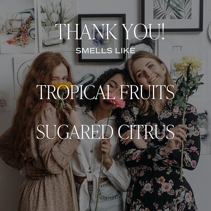 Sweet Water Decor Thank You Candle | Tropical Fruit and Sugared Orange, Summer Scented Soy Wax Candle for Home | 9oz Clear Jar, 40 Hour Burn Time, Made in The USA