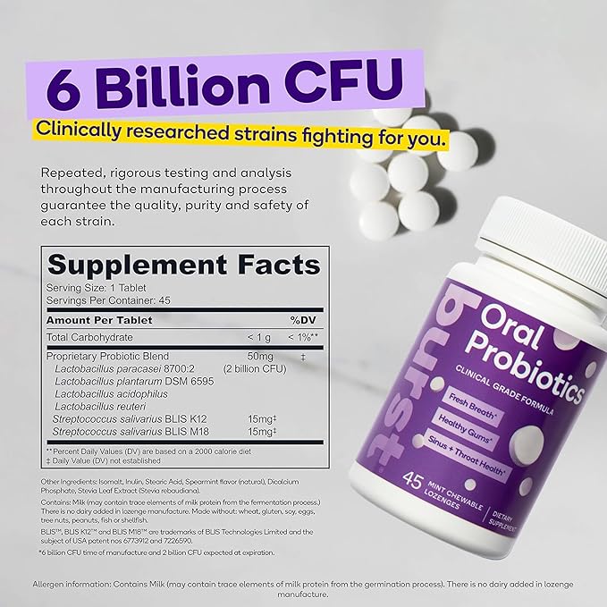 - Product Benefits : Combats bacteria linked to periodontal issues, Fights bad bacteria, promoting a balanced oral microbiome, Promote and support fresh breath, Significantly reduce bad breath in over 85% of subjects*, Starts working in the mouth to support overall health and wellness Combats bacteria linked to periodontal issues, Fights bad bacteria, promoting a balanced oral microbiome, Promote and support fresh breath, Significantly reduce bad breath i⦠See more