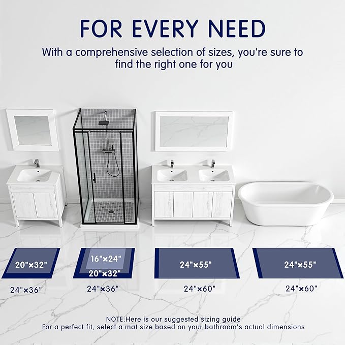 - SIZE GUAIDANCE: Our size chart showcases suggested uses for each size. These mats work beyond bathrooms—try them as entryway, kitchen, or sofa covers. For best fit, measure your space before purchase.