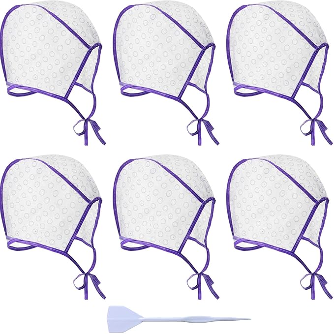 6 Pieces Highlighting Cap Hair Frosting Cap Highlight for Dye Color Bleach with Plastic Hooks Hair Coloring Salon Hairdressing Tool Kit Supplies(Purple)