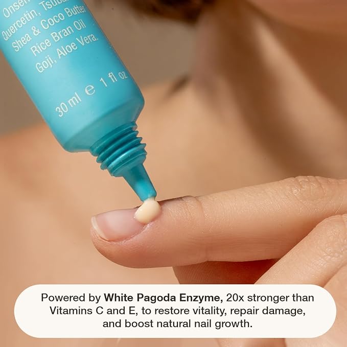 - ENZYME-ACTIVATED REPAIR: Powered by Japanese White Pagoda Flower Enzymes, which are 20x stronger than Vitamin C & E. This ultra-potent nail and cuticle serum absorbs instantly, boosting hydration, reducing brittleness, and accelerating your natural nail growth.