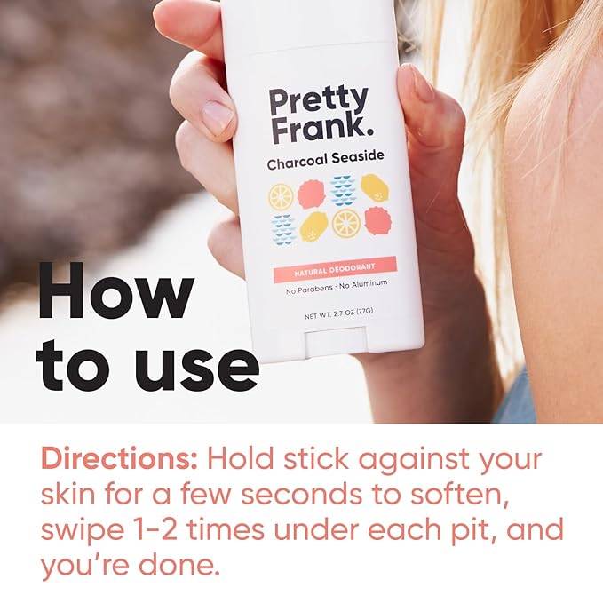 - CHARCOAL SEASIDE - An invigorating blend of Lavender, Palmarosa, Lemon, and Juniper Berry from essential oils. Pretty Frank natural deodorant is easy to use with just 1-2 swipes and pure enough to put anywhere. Use it on your pits, bits, feet - wherever you need odor protection.
