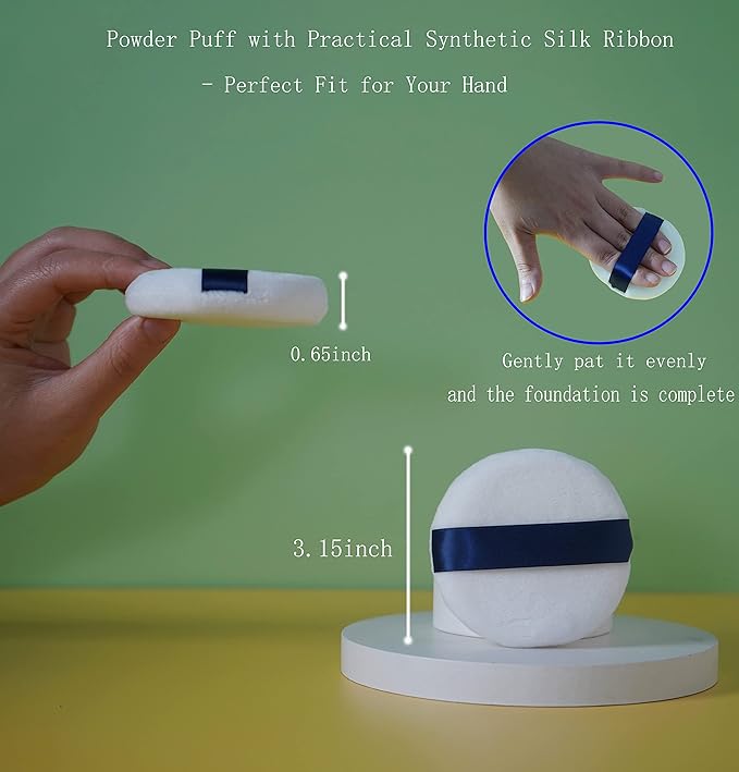 - 【Easy to Use, Normal Size, and Handling】: Each makeup puff is about 3.15 inches/8cm, with a thickness of 0.65 inches/1.65cm. the normal size can fit your hand well. According to the feedback from makeup artists, it is very easy to operate with one hand, making it easy to put powder in certain points away from the client's face and allowing mixed powders to enter the skin more quickly and easily. Very suitable for their needs. Easier to aapply than triangle powder puff.
