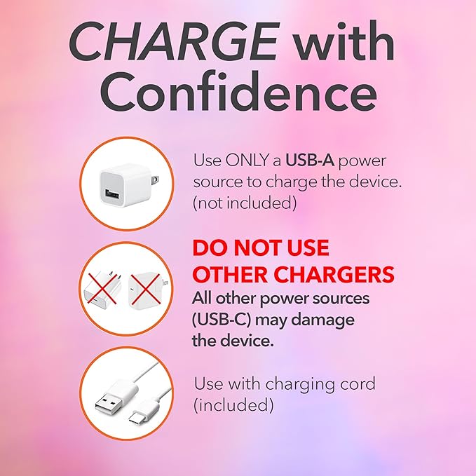 - CHARGING INSTRUCTIONS: The FaceWare Pro cannot be charged using a USB-C power source directly. Use a USB-A power source and the provided USB-C charging cord. Avoid high-powered charger blocks to prevent potential battery damage.