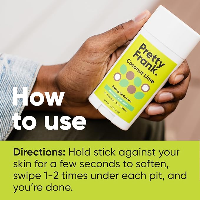 - COCONUT LIME - Level up your mood with a refreshing blend of Coconut and Lime from essential oils. Pretty Frank natural deodorant is easy to use with just 1-2 swipes and pure enough to put anywhere. Use it on your pits, bits, feet - wherever you need odor protection.
