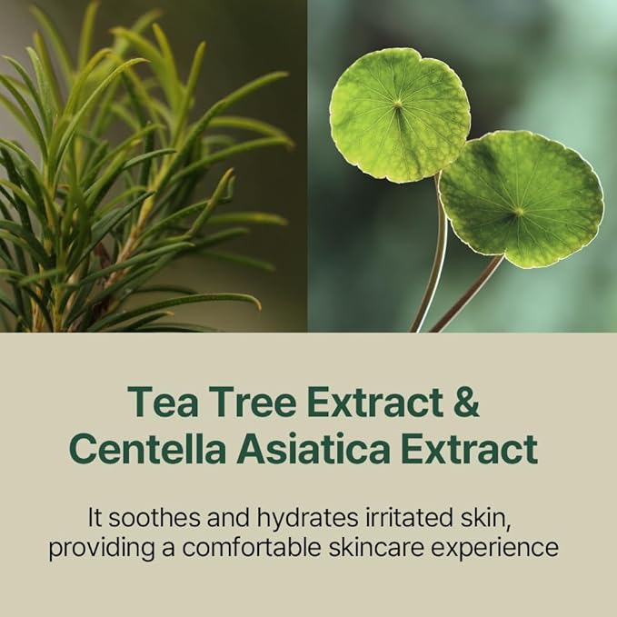 - Perfect for Irritated and Sensitive Skin Types - Through Centella Asiatica extract (also called as Cica or Madecassoside), Tea Tree and Lonicera Japonica Flower Extract, known as a representative soothing ingredient, that quickly calms angry skin in a healthy way and controls excess sebum also moisturizes irritated skin without worrying about irritation