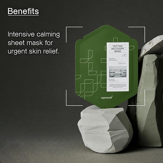 Peptide Recovery Mask with Cica and Rose Water, Calms and Soothes, Antioxidant-Rich Sheet Mask for Sensitive Skin, 7 Count