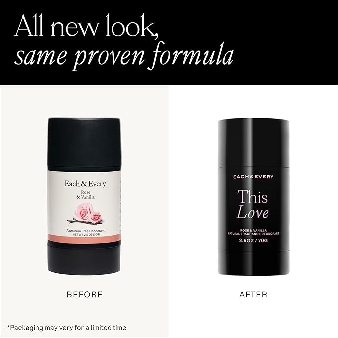 Each & Every Aluminum Free Deodorant for Women & Men, Rose & Vanilla - All Natural Deodorant for Sensitive Skin, EWG Verified - Clean, Baking Soda-Free, Plant-Based Fragrance - 2.5oz, 2 Pack