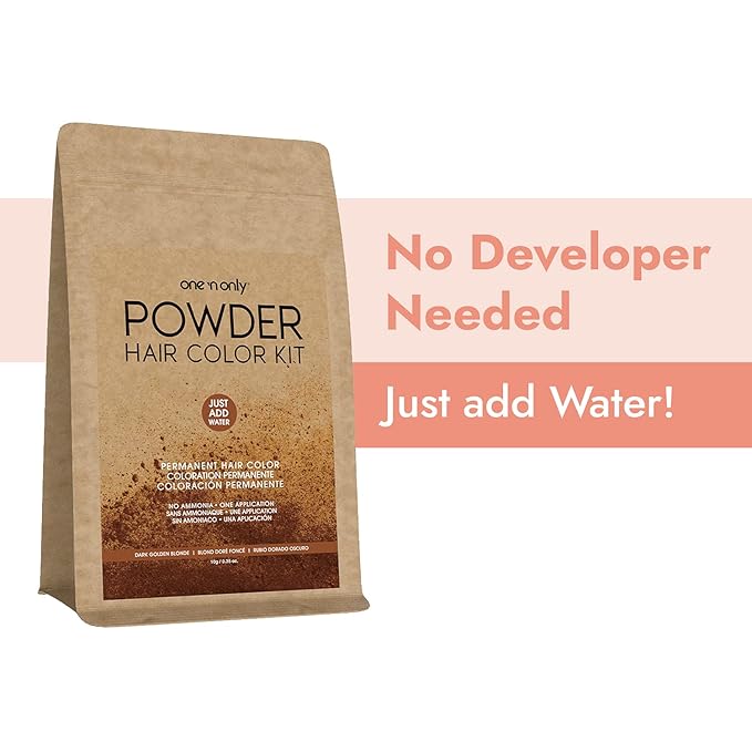 One N' Only Powder Hair Color Kit, Dark Golden Blonde, Permanent Color in Single Application, 100% Gray Hair Coverage without Lift, Just Add Water - No Developer Needed, Vegan and Cruelty Free