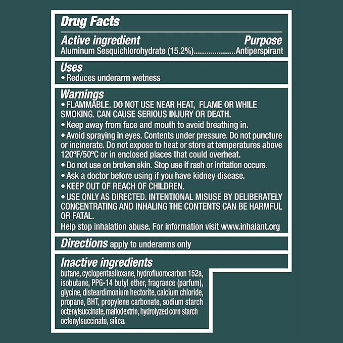 - This Degree dry spray deodorant contains a modern masculine scent built on amber and woody notes