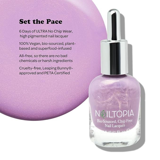 Nailtopia - Plant-Based Chip Free Nail Lacquer - Non Toxic, Bio-Sourced, Long-Lasting, Strengthening Polish - Set The Pace (Light Purple With Gold Reflects) - 0.41oz