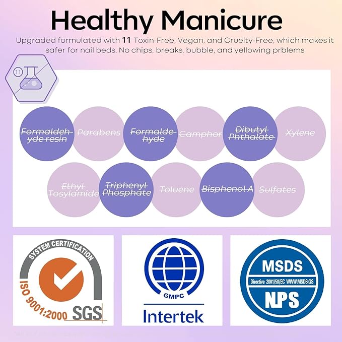 - Healthy & Nail-Friendly: Modelones lavender gel nail polish features 11 toxin-free ingredients, healthy, safe, skin-friendly and low odor. No harsh ingredients or adhesives lead to damaged nails. With our exclusive easy-glide brush for professional, quick, even, easy application on nails, easy for nail starter decorate nails, feel hassle-free manicure at home, no more salon again