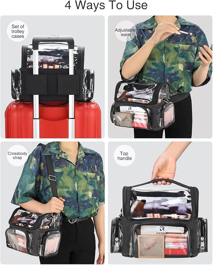 - HIGH QUALITY: The environmentally friendly transparent TPU used in the cosmetic bag can clearly see the inside and is waterproof and easy to clean. There is also waterproof nylon, which can protect cosmetics very well, and you can also stick your favorite stickers on the cosmetic bag to make it more beautiful.