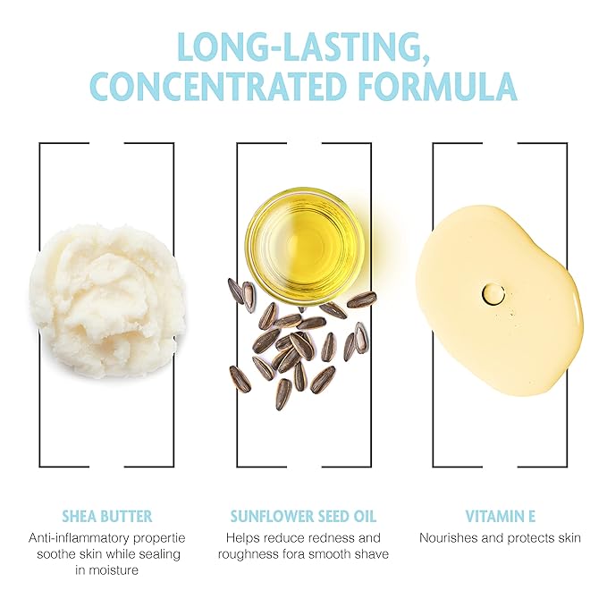 - Safe & Natural Ingredients - This soothing sensitive skin shaving cream contains Shea Butter, Sunflower Seed Oil, and Vitamin E to nourish and moisturize skin for a smooth shave. Not only is this a shaving cream for men, but it's also a shaving cream women can use.
