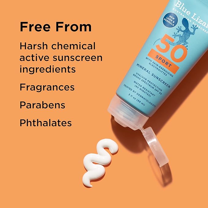 Blue Lizard Sport Mineral SPF 50 Lotion, Ideal for Athletes, 100% Mineral Sunscreen Actives, Fragrance-Free, Paraben-Free, Vegan, 3.0 fl oz
