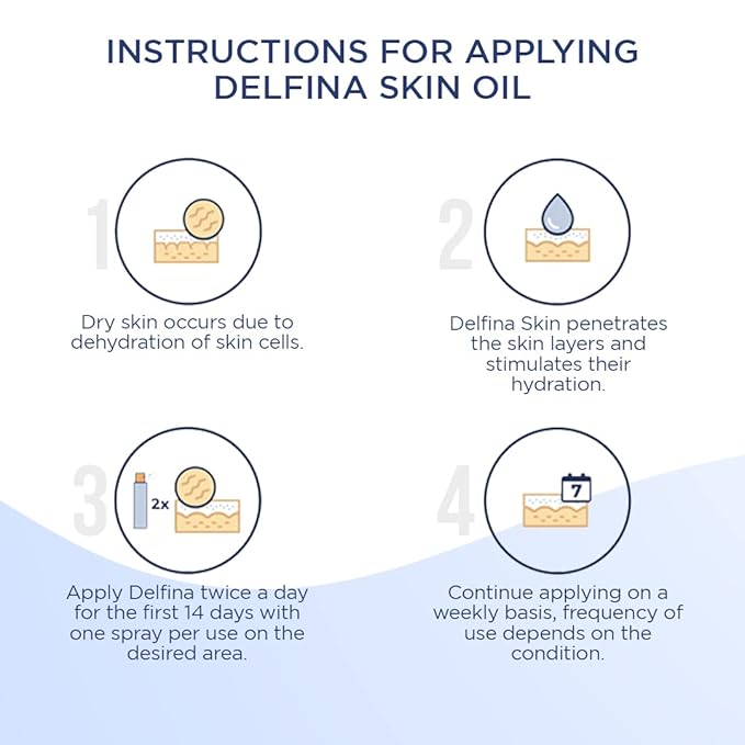 - [Product Attributes] Delfina Skin Oil is Natural, Vegan, Unscented, and Gluten-Free. Each bottle contains 90 to 95 sprays. Allow the product to be fully absorbed and it targets and alleviates skin concerns and provides instant restoration for skin.