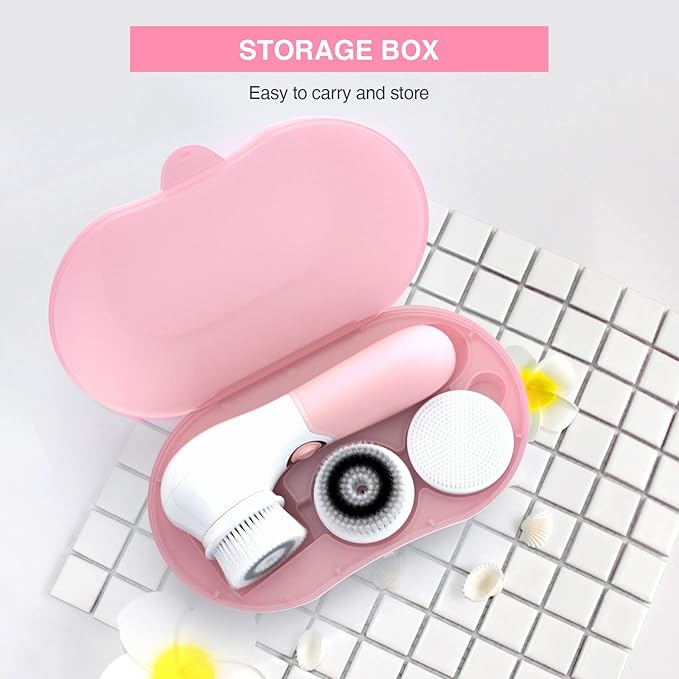 - 【Equipped with storage box and Battery-operated】Cordless facial spin brush powered by 2 AA Batteries (not included).this kit will take up little room in your bathroom or travel bag.Equipped with storage box,it can prevent dirty from adsorbing on the brush head to a large extent, and avoid secondary damage to the skin.