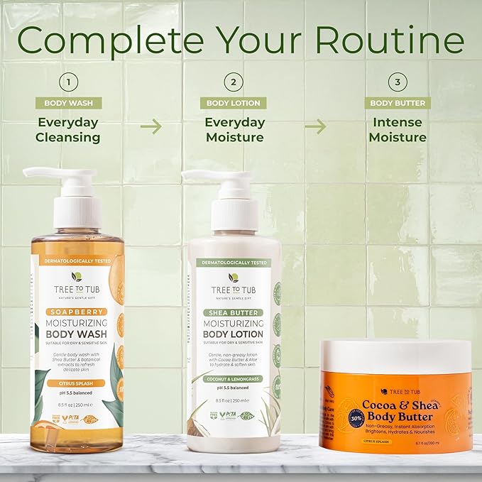 Tree to Tub Cocoa Butter Lotion for Sensitive Skin - Moisturizing Shea Butter Lotion for Extremely Dry Skin for Women & Men - Lemongrass & Coconut Body Cream w/Organic Aloe Vera, Colloidal Oatmeal