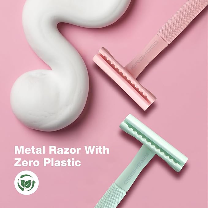 KINGHOOD Safety Razor for Women with 10 Double Edge Razor Blades, Single Blade Razors for Women and Men, Resuable razor, Plastic Free - Green