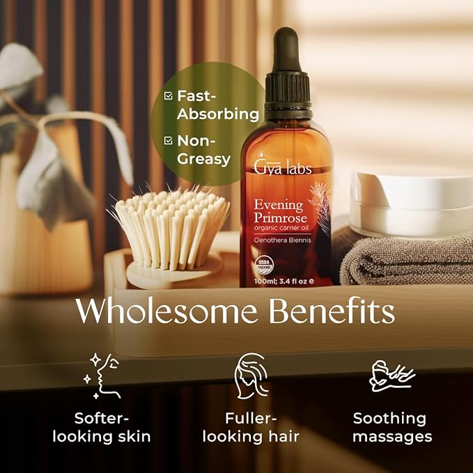 Gya Labs Evening Primrose Carrier Oil - 3.4 Fl Oz - for Hair, Skin, Face, Scalp & Body Massage
