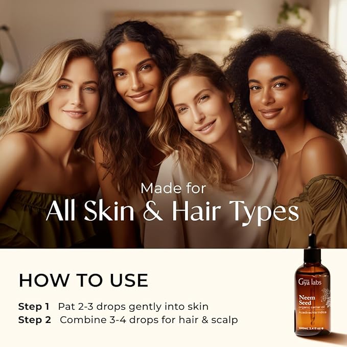 Gya Labs Neem Carrier Oil - 3.4 Fl Oz - for Hair, Skin, Face, Scalp & Body Massage