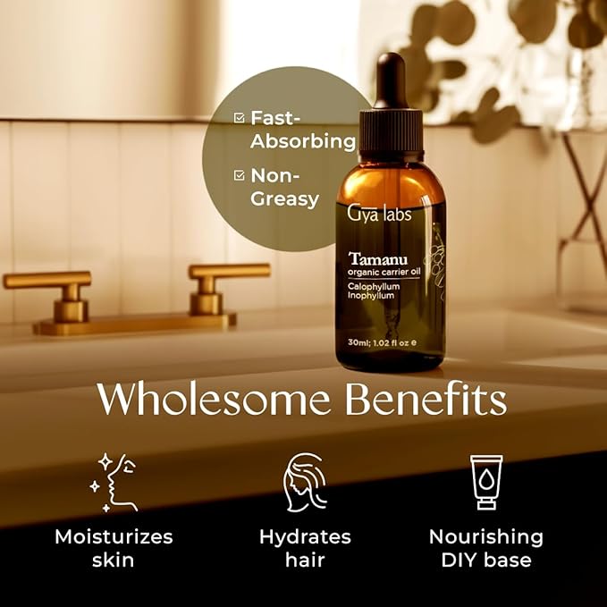 Gya Labs Tamanu Carrier Oil - 1 Fl Oz - for Hair, Skin, Face, Scalp & Body Massage