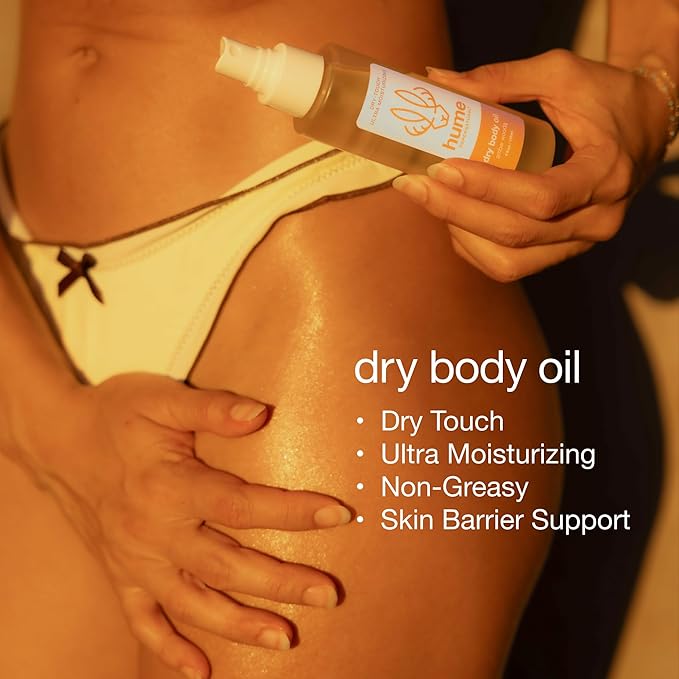 HUME SUPERNATURAL Dry Body Oil Spray - Ultra Hydrating Oil for Dry Skin, Light and Nourishing Body Oils for Women and Men, Long-Lasting Moisture (Amber Woods 1-Pack)