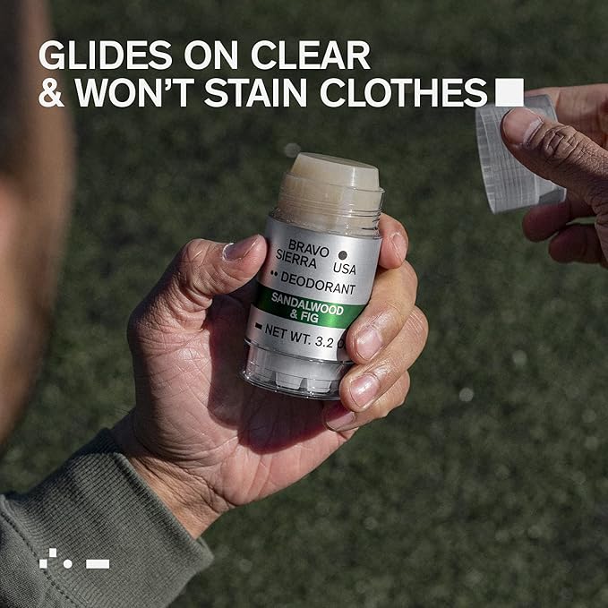 - Long-Lasting Odor Protection: Bravo Sierra Deodorant uses aluminum-free and baking soda-free technology to provide long-lasting odor and sweat protection, even in the most demanding conditions. Sandalwood & Fig has an energizing and vibrant scent with notes of fig, tangerine, amber, and sandalwood.