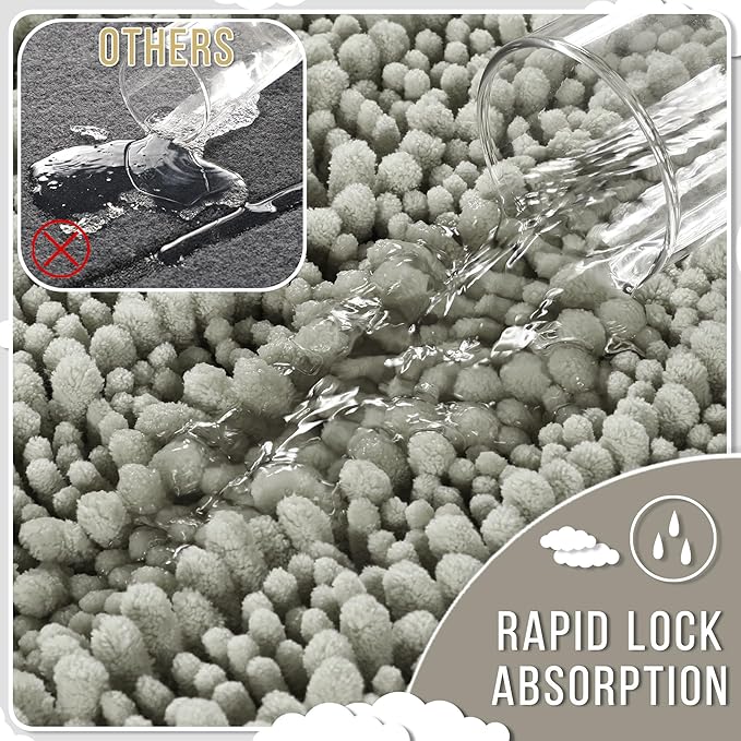 - Massive Water Absorption in Seconds: 5X faster than other materials mats, Yimobra bath mat absorbs 1000ml of water in 3 seconds. The vertical fiber channels lock moisture away from the surface, keeping your bathroom floor dry and discouraging damp environments. Perfect as a shower exit guard or sink splash catcher