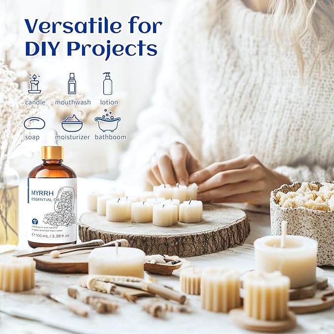 HIQILI 100ML Myrrh Essential Oil for Skin, Diffuser & Candle, 100% Pure and Natural - 3.38 Fl Oz