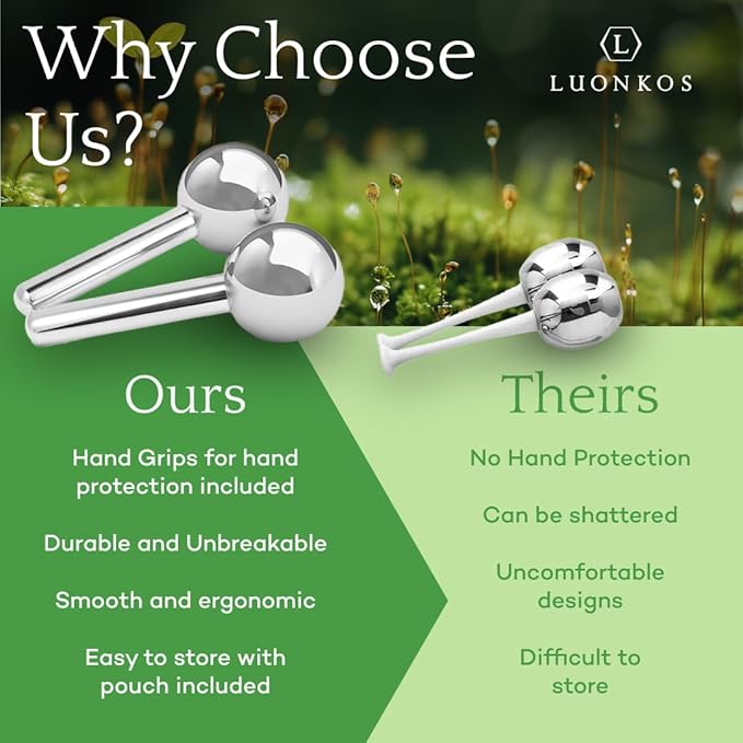 - Nurturing Self-Care Tools: Discover the calming benefits of the LUONKOS Ice Globes, tailored for holistic beauty routines. These skincare tools support lymphatic drainage, offering a gentle touch that enhances overall skin texture and tone