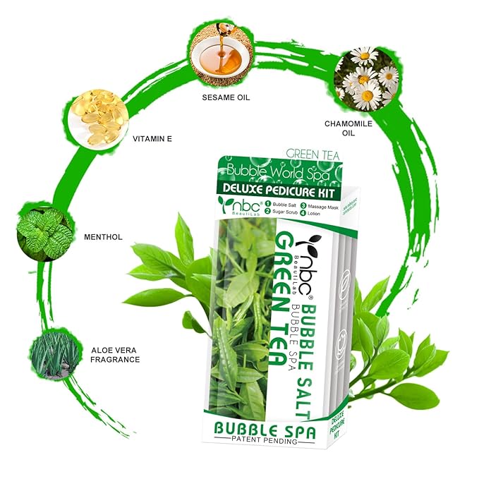 Pedicure Kit Foot Soak Set: Bubble Salt, Sugar Scrub, Massage Mask, Massage Lotion in a Box, 4 Step Foot Spa Kit for Dry Feet,Tired Feet๏ผ3 Set Green tea)