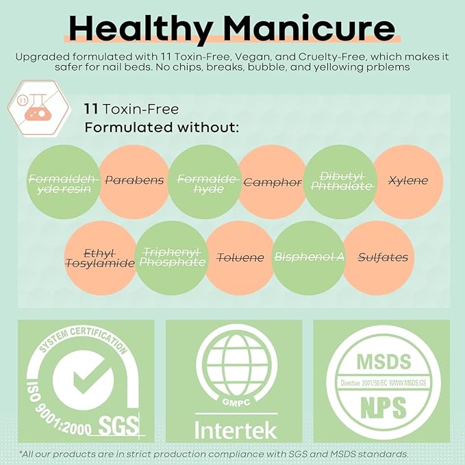 - Certified Vegan & Cruelty-free: Modelones Milky Green gel nail polish set composed of 11 non-toxic, vegetarian, and cruelty-free that make people feel good. No irritating ingredients. Modelones nail polish is rich in natural resin, making your nail bed safer, and preventing nail chipping, breakage, and yellowing. Enjoy a quality salon with perfect nails with a nail-friendly formula.