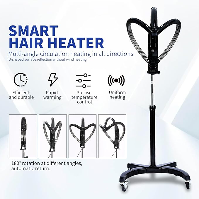 - Special Feature : The swing arm with an open design can be adjusted to multiple angles, which can cover the whole head to make it evenly heated while providing customers with broad vision. And the function keys allow for easy operation. The swing arm with an open design can be adjusted to multiple angles, which can cover the whole head to make it evenly heated while providing customers with broad visi… See more