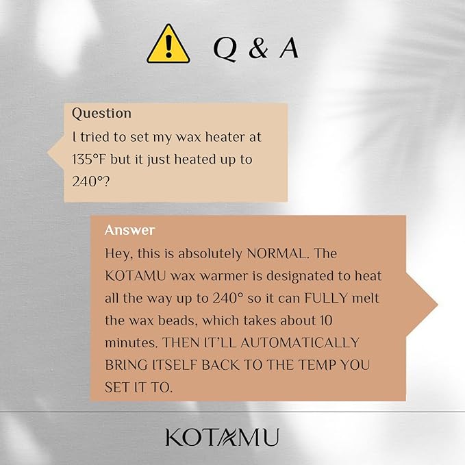 - 10 MINS TO HEAT - Wax that doesn't melt evenly can crack and go brittle...That’s why the “Automatic Keep Warm” function matters: your pearl wax always stays ready for serving! Featuring the innovative PTC heating technology, Kotamu wax warmer for hair removal just provides more UNIFORM HEATING