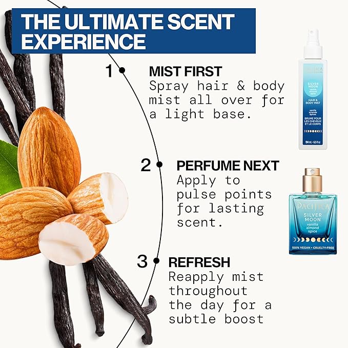 Pacifica Hair Perfume & Body Fragrance Spray Mist - Silver Moon with Vanilla, Almond & Spice – Alcohol-Free, Vegan & Cruelty-Free, 6.5 oz