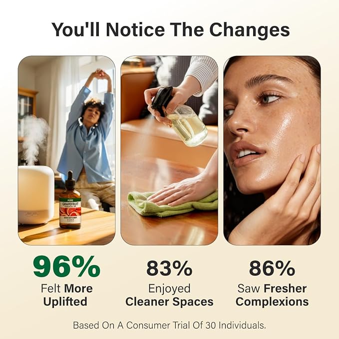 - Blends Well with Other Oils. Grapefruit oil essential is a versatile scent that goes well with any scent. Create a refreshing DIY surface spray or mix a few drops into your homemade cleaning recipes for an uplifting, citrusy sparkle.