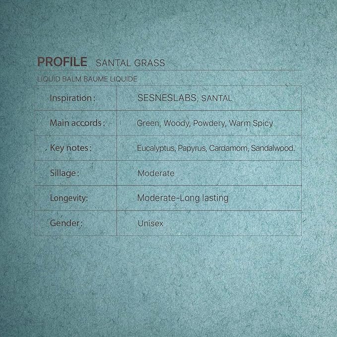 - PREMIUM FRAGRANCE NOTES: Features eucalyptus, papyrus, cardamom, and sandalwood for a balanced santal perfume oil blend. Enjoy a sophisticated and long-lasting aroma.