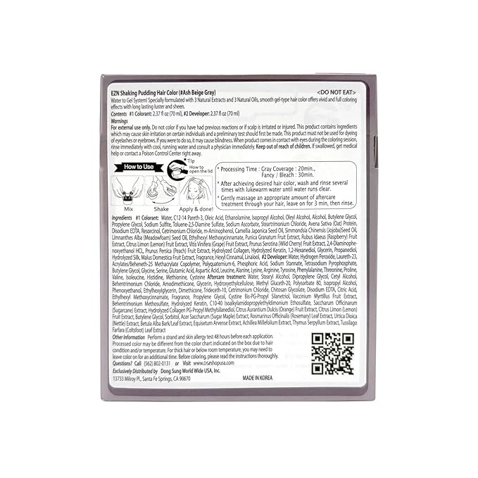 eZn Pudding Hair Dye, Ammonia-Free, Semi-Permanent DIY Korean Hair Dye Color with Keratin, Odorless Gentle for Sensitive Skin No Skin Irritation (Ash Beige Gray)