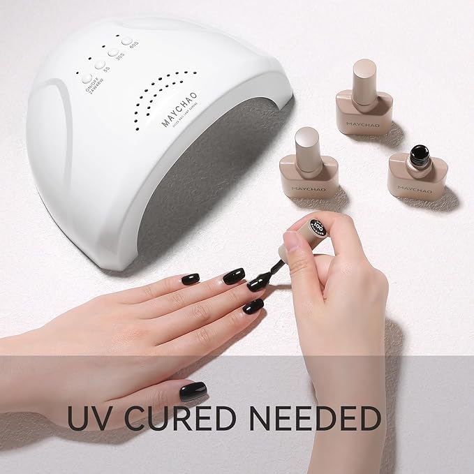 - Fast and Simple Nail Polish: MAYCHAO Gel polish must be cured under an LED light. It is necessary to apply a base and top coat. Average LED light duration is 60-120 seconds. Simple application and tenacity.