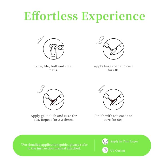 - Fast and Simple Nail Polish: MAYCHAO Neon Green Gel polish must be cured under an LED light. It is necessary to apply a base and top coat. Average LED light duration is 60-120 seconds. Simple application and tenacity.
