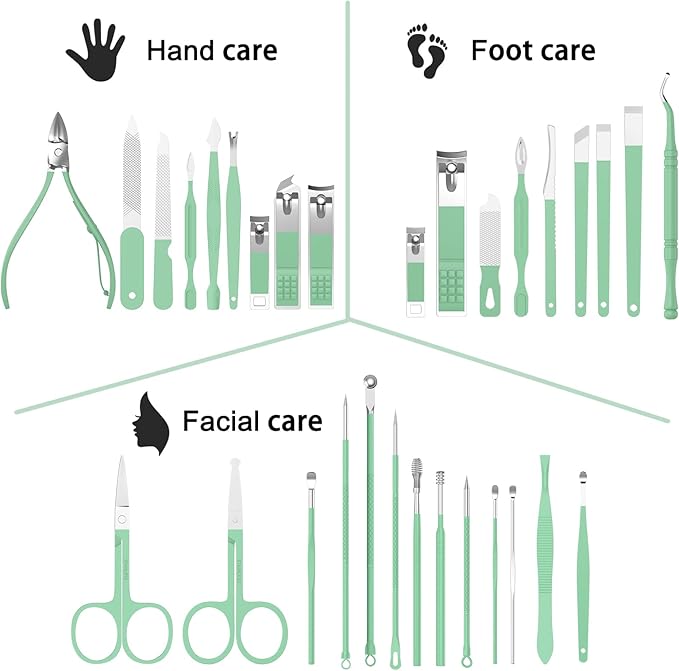 - Smart choice: 31 kinds of care tools for hands, feet and face, can be used independently to avoid infections. Choose this product for personal hygiene.