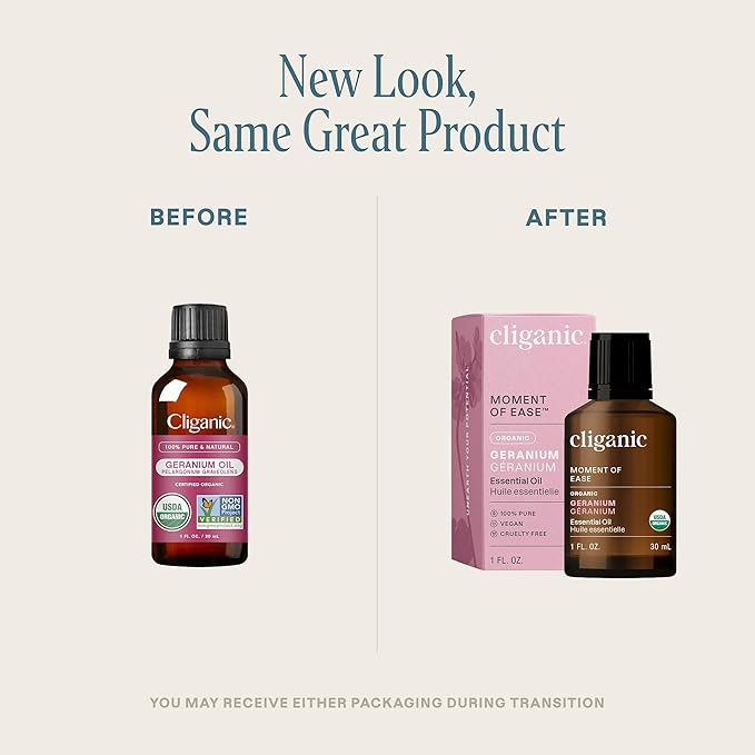 Cliganic Organic Geranium Essential Oil, 100% Pure Natural for Aromatherapy | Non-GMO Verified (Packaging May Vary)