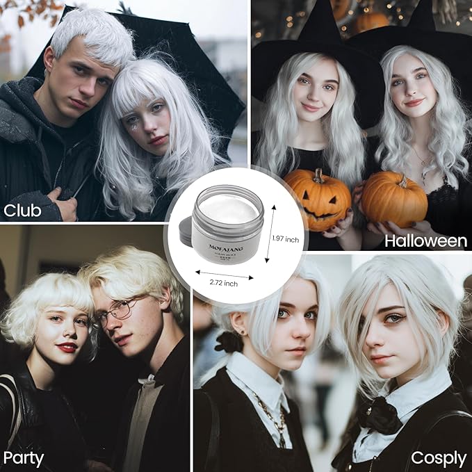 White Temporary Hair Color Wax - SOVONCARE Washable Hair Dye for Men & Women, All-Day Hold Disposable Hair Styling Clays for Party, Cosplay & Daily 4.23 oz