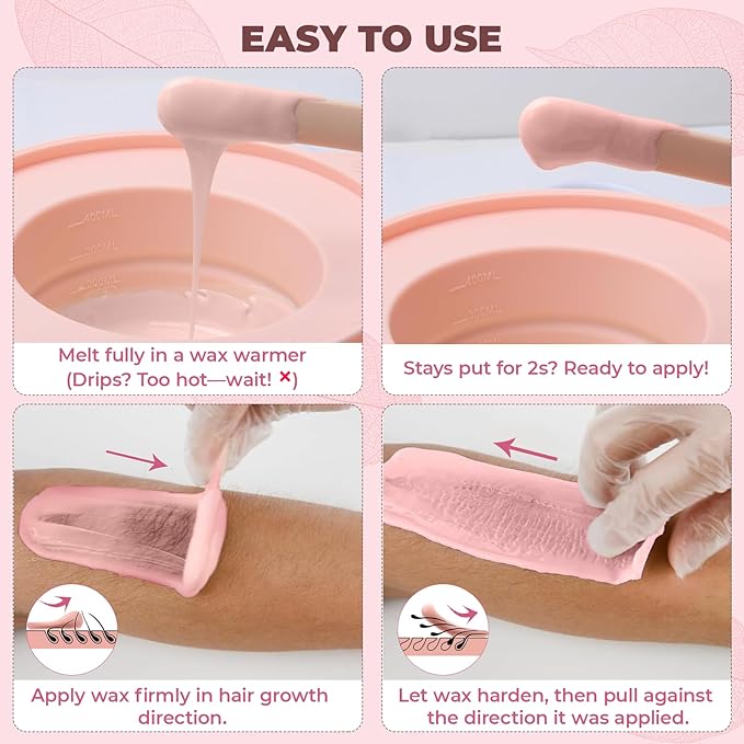 - Affordable & Easy Hair Removal:They melt into a soft wax that goes on smoothly without the mess. Get salon-quality results at a fraction of the price with our brazilian wax beads. It's an affordable hair removal solution for the beginer or professional waxer