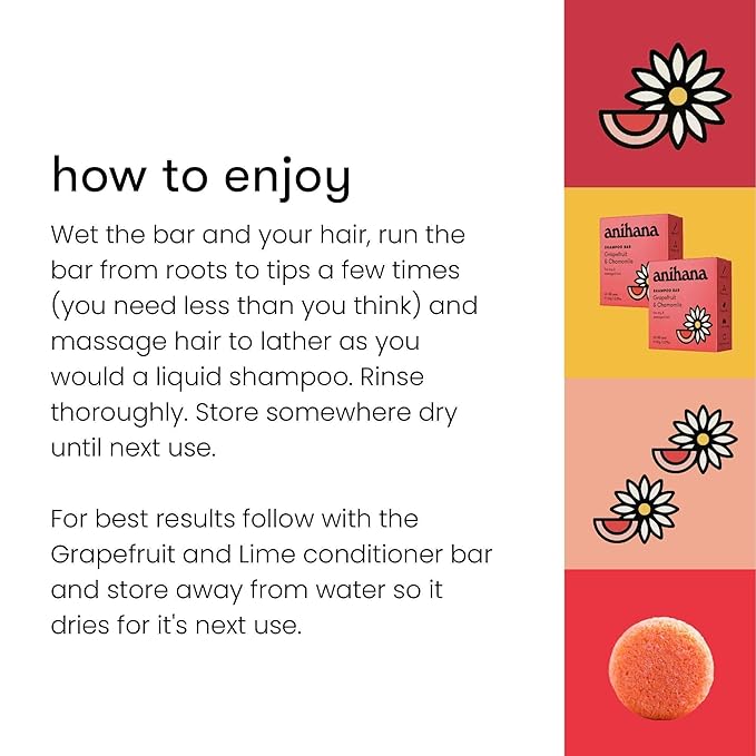 - GRAPEFRUIT & CHAMOMILE: Introducing Anihana shampoo bar infused with grapefruit & chamomile with a delightful fragrance, leaving your hair smelling fresh and revitalized without overwhelming your senses