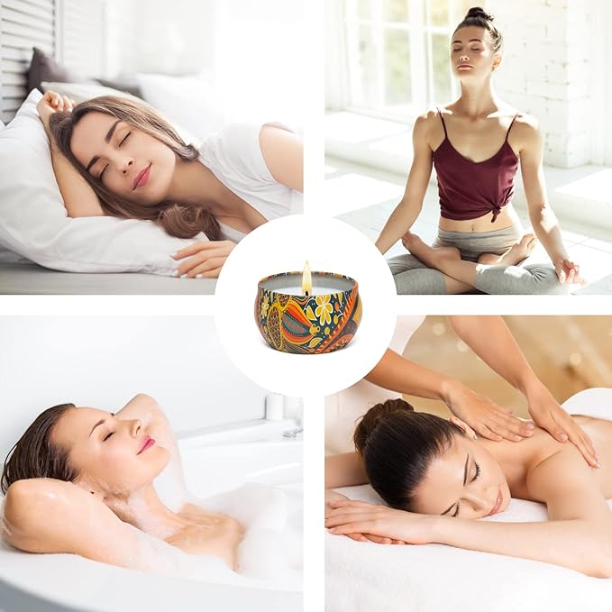 - Portable Travel Candle Tin Set: 2.5 oz small tin of aromatherapy candles can be carried easily, suitable for business or travel. A familiar taste would be found in a strange place relieving fatigue and improving sleep quality.