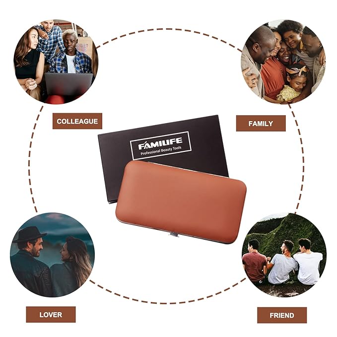 - 【GIFT IDEALS & UNIQUE GIFTS】: FAMILIFE 9-piece mens manicure set with brown luxury leather case and delicate gift box. The gift set perfect as birthday gifts for men, teacher gifts, boyfriend gifts, women gifts, dad gifts, best friend gifts, Christmas Gifts, Thanksgiving Gifts, Father's Day Gifts, Mother's Day Gifts, Thanksgiving Gifts, Valentine's Day Gifts and more