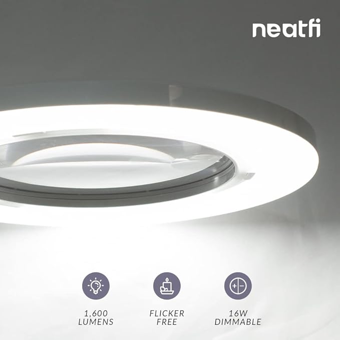 Neatfi XL Bifocal LED Magnifying Lamp, 7-Inch Acrylic Lens, 5D/20D Magnification, Hands-Free, Dimmable, 84 SMD LED, Adjustable Arm for Crafts, Reading, Close Work (White, with Base)
