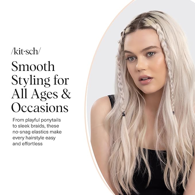 - EASY & EFFORTLESS STYLING: Kitsch No-Snag Elastics have a thick easy-glide coating so they remove from the hair with ease. They are perfect for ponies and braids of any length!